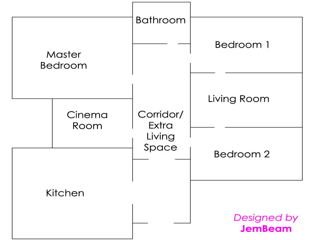 As I myself have a pink and white themed house I was really happy to see this design! There is a lovely big kitchen at the entrance of the house which leads to the really nice living room, I love how simple but effective this design is. The bathroom is in a good place, between the master bedroom and bedroom 1.