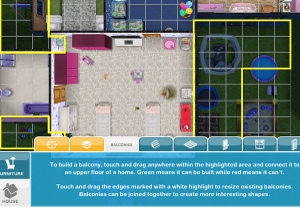 To build a balcony, touch and drag anywhere within the highlighted areas
