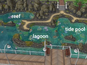When you start you can only use the first pool, you need to find all 6 different items in the tide pool to complete the first two row in the snorkelling collection to unlock the second pool which is the lagoon, you then need to find the 6 items in the lagoon to unlock the final pool which is the reef option, find the last 6 to complete the collection
