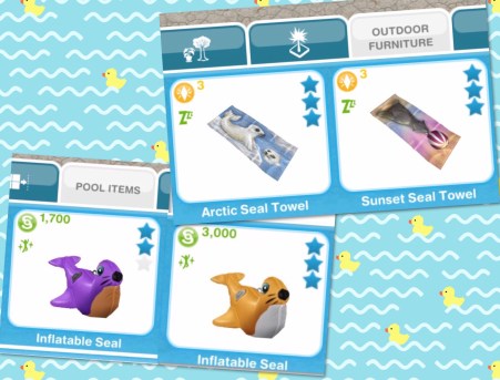 - The first time you complete the snorkelling hobby you unlock inflatable seals which can be found in the pool items section and beach towels which can be found in the outdoor furniture section