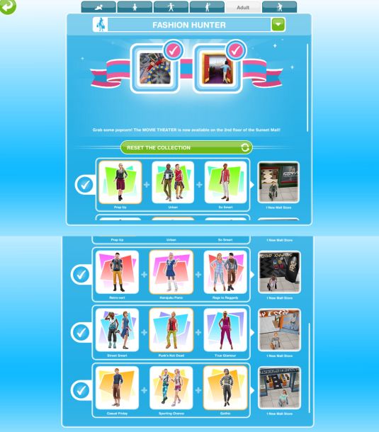 The rewards for completing this collection are the simtown cinema and 3LP: