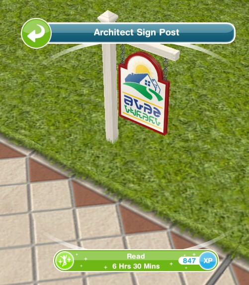 • Read a real estate sign- 6 hours 30 minutes [inspired: 6 hrs 11 mins] (the sign will appear by the mailbox once a sim has gone to work as a real estate agent)