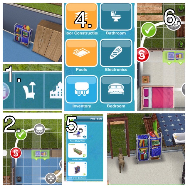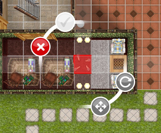 - Click on the bookcase and position where you want it in the new house, click the green tick to place it