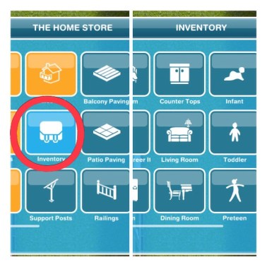 Opening the home store– click on the furniture button on the panel shown in the picture below. It will look different depending on what device you are playing on: