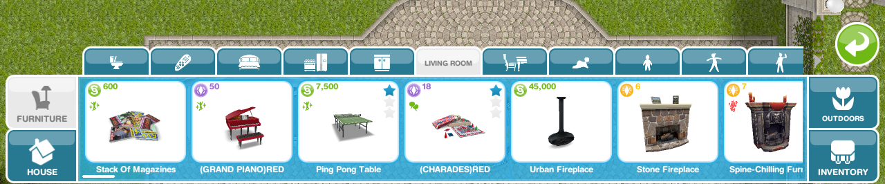 For example the tab for Living Room can be found when you open the home store, clicking on this will show you all the living room items: