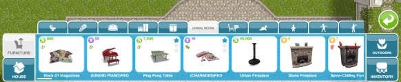 If you are playing on a smaller device the home store will appear in a box filling half the screen, there are no individual sections for furniture, house and outdoors on this one, the tabs for different categories are all in this box.