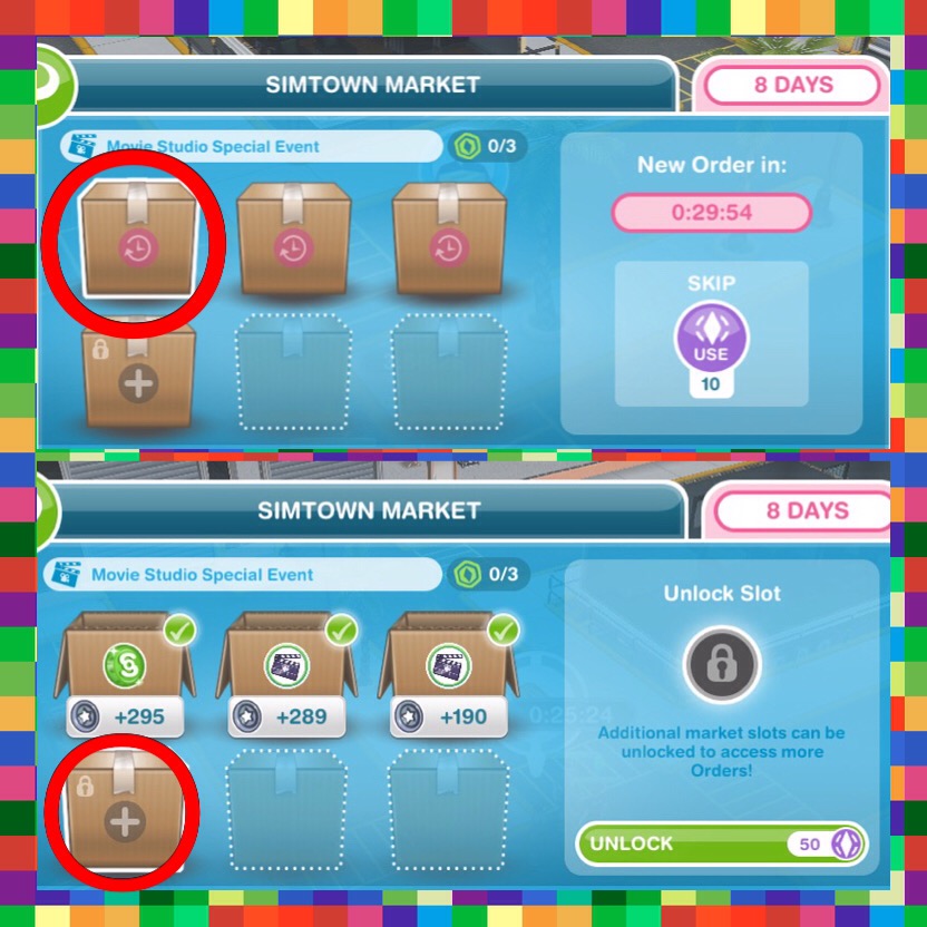 • You’re welcome! You will get different shipments that require resources from different profession careers, it shows you on the box the icon of the career that shipment requires resources for. The best way to speed up the progress is by having more than one sim working, if you are fairly new to the game or don’t have many sims yet to be able to complete these then I would just leave them for now as simtown market events always come back again if you don’t manage to complete them the first time