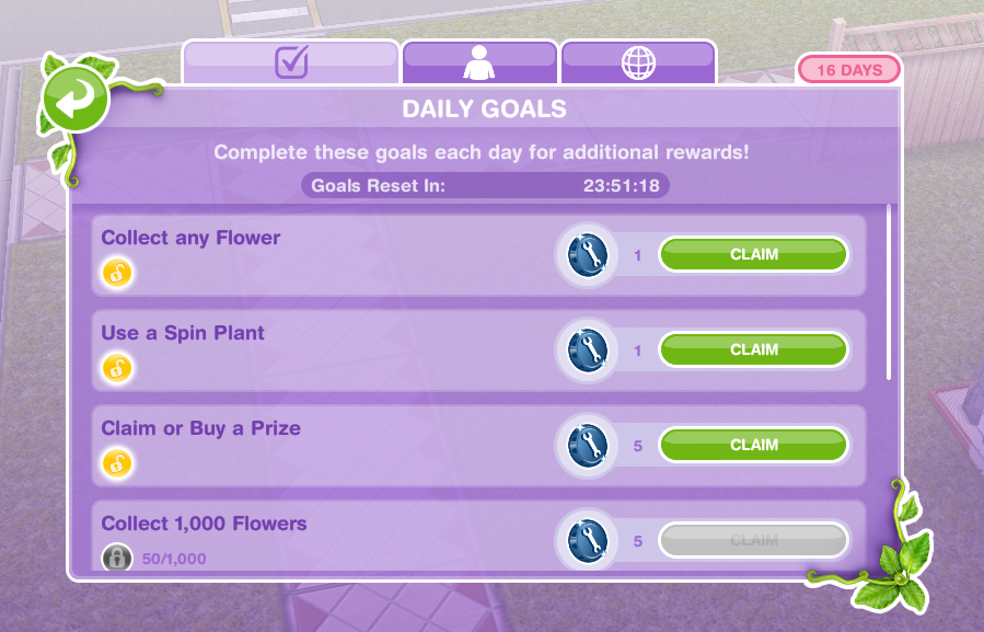 NOTE: remember to click CLAIM once you have completed a daily goal to collect the reward and remember to claim your free constructor coin and free daisies each day!