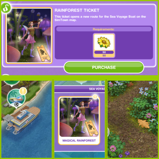 Visit the magical rainforest (go to the sea voyage boat in sim town)