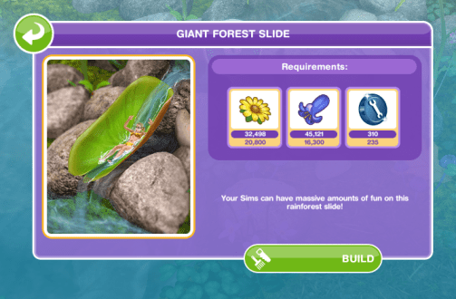 The wings are free once you have built everything else. It takes 9 hours to build the ladybug, which was my last thing. And 9 hours for the wings. I spent 1200 social points to complete the ladybug build, and I had about half of the requirements.