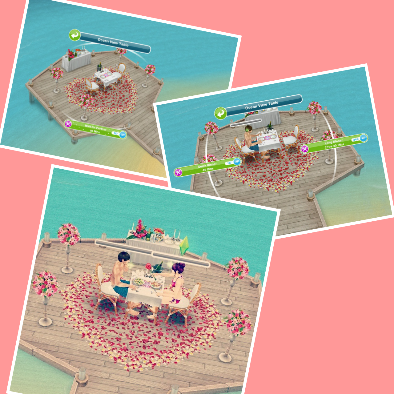 Your sims can enjoy a romantic dinner with a partner here, choose from a quick dinner (45 minutes) or a long dinner (2 hours 30 minutes)