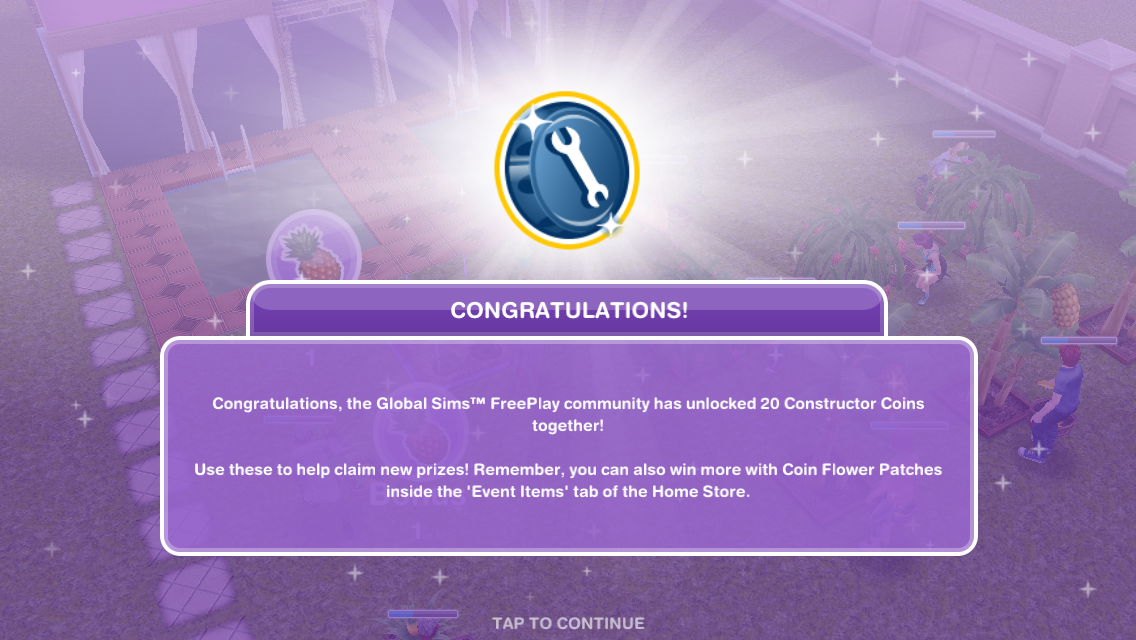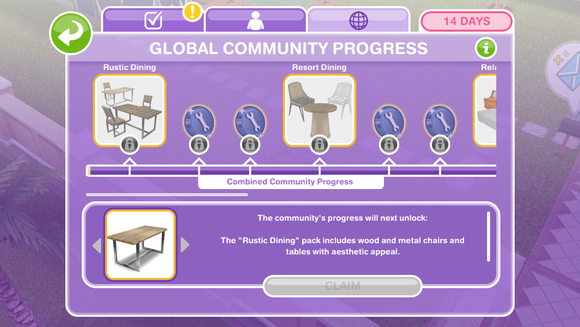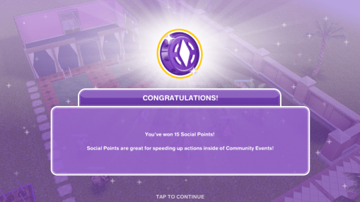 This made me start from the beginning and “unlock” aka pass everything I already earned, so the only new things I got were the community pieces. I just needed the wedding venue and bungalow and it looks like I will still be without them. So frustrating.