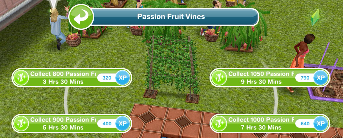 Collect bonuses (while collecting after a certain amount of time you will see the fruit appear above that sims head, click to collect bonus fruit!)