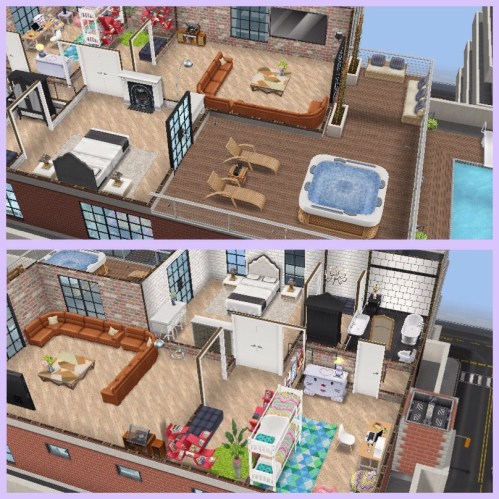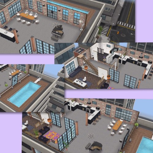 This house guide is going to show you the penthouse and 3 story apartments that can be built in downtown, where the hospital is located. There are currently four penthouse templates that can be built on 3 house lots (that you unlock once you have completed the Sims and the City Discovery Quest) and a 3 story luxury apartment (that you unlock if you complete the Downtown Developer Event in the time limit) in downtown.
