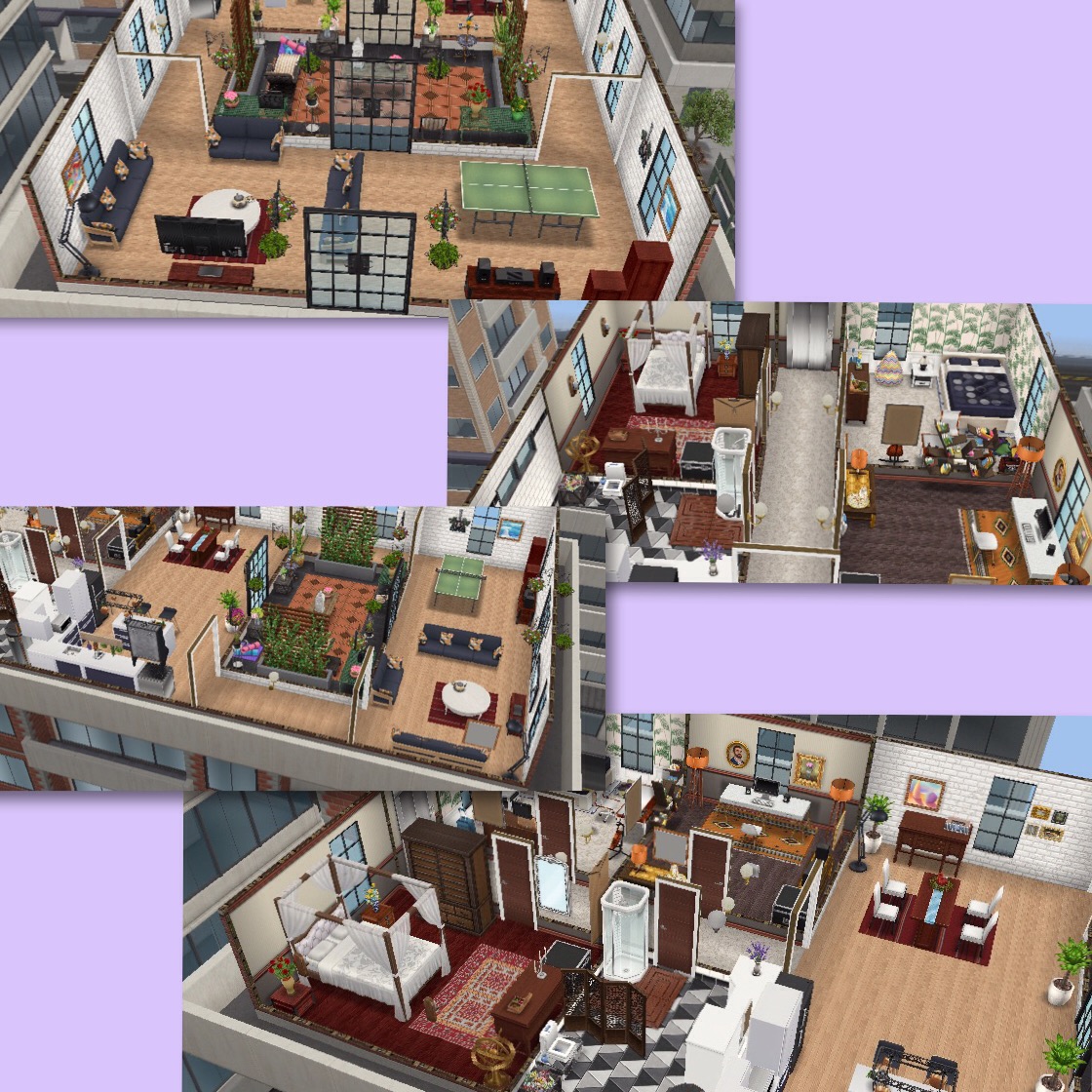 This house guide is going to show you the penthouse and 3 story apartments that can be built in downtown, where the hospital is located. There are currently four penthouse templates that can be built on 3 house lots (that you unlock once you have completed the Sims and the City Discovery Quest) and a 3 story luxury apartment (that you unlock if you complete the Downtown Developer Event in the time limit) in downtown.
