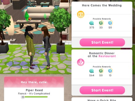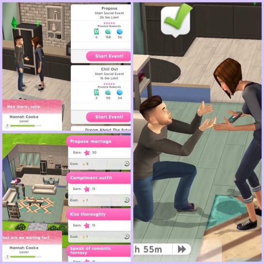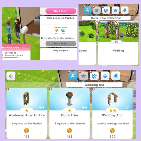 14.Complete the ‘Here Comes the Wedding’ event at Home- takes up to 8 hours to complete (will take up to 4 hours if you use two of your sims to complete this)* (select the event on your sim’s partner) Reward:5 simcash, 25 coins and 10XP