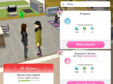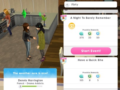 5.Complete the ‘Do You Take This Menu?’ culinary event at the Restaurant- takes up to 8 hours to complete (will take up to 4 hours if you use two of your sims to complete this)* (select the event on your sim’s partner) Reward: 25 coins and 10XP