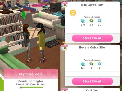 12.Complete the ‘True Love’s Test’ event at Civic Center- takes up to 8 hours to complete (will take up to 4 hours if you use two of your sims to complete this)* (select the event on your sim’s partner) Reward 25 coins and 10XP
