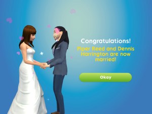 So I discovered there is a quest where if you complete it, your Sims automatically get the married screen, wasn’t prepared for that. My Sim is stuck in her wedding dress now though and keeps putting it back on!