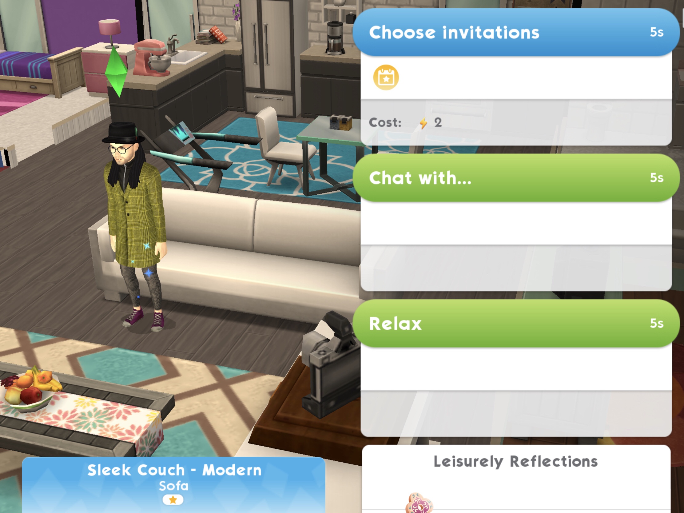 2.Choose wedding invitations- 5 seconds, costs 2 energy (select the blue interaction on a sofa) Reward: 25 coins