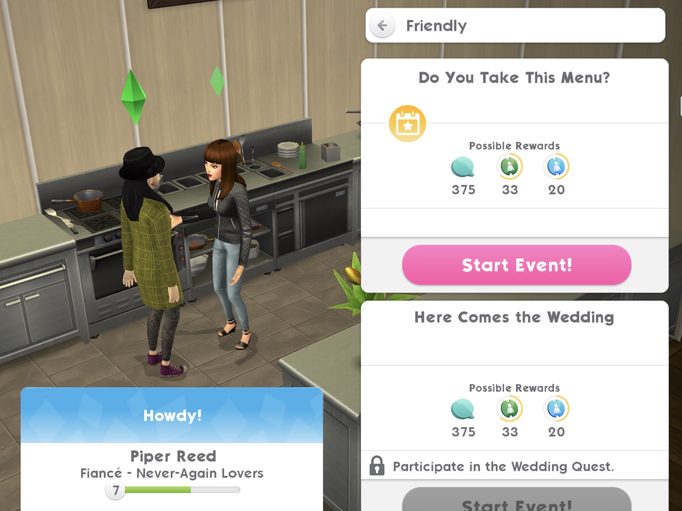 5.Complete the ‘Do You Take This Menu?’ culinary event at the Restaurant- takes up to 8 hours to complete (will take up to 4 hours if you use two of your sims to complete this)* (select the event on your sim’s partner) Reward: 25 coins and 10XP