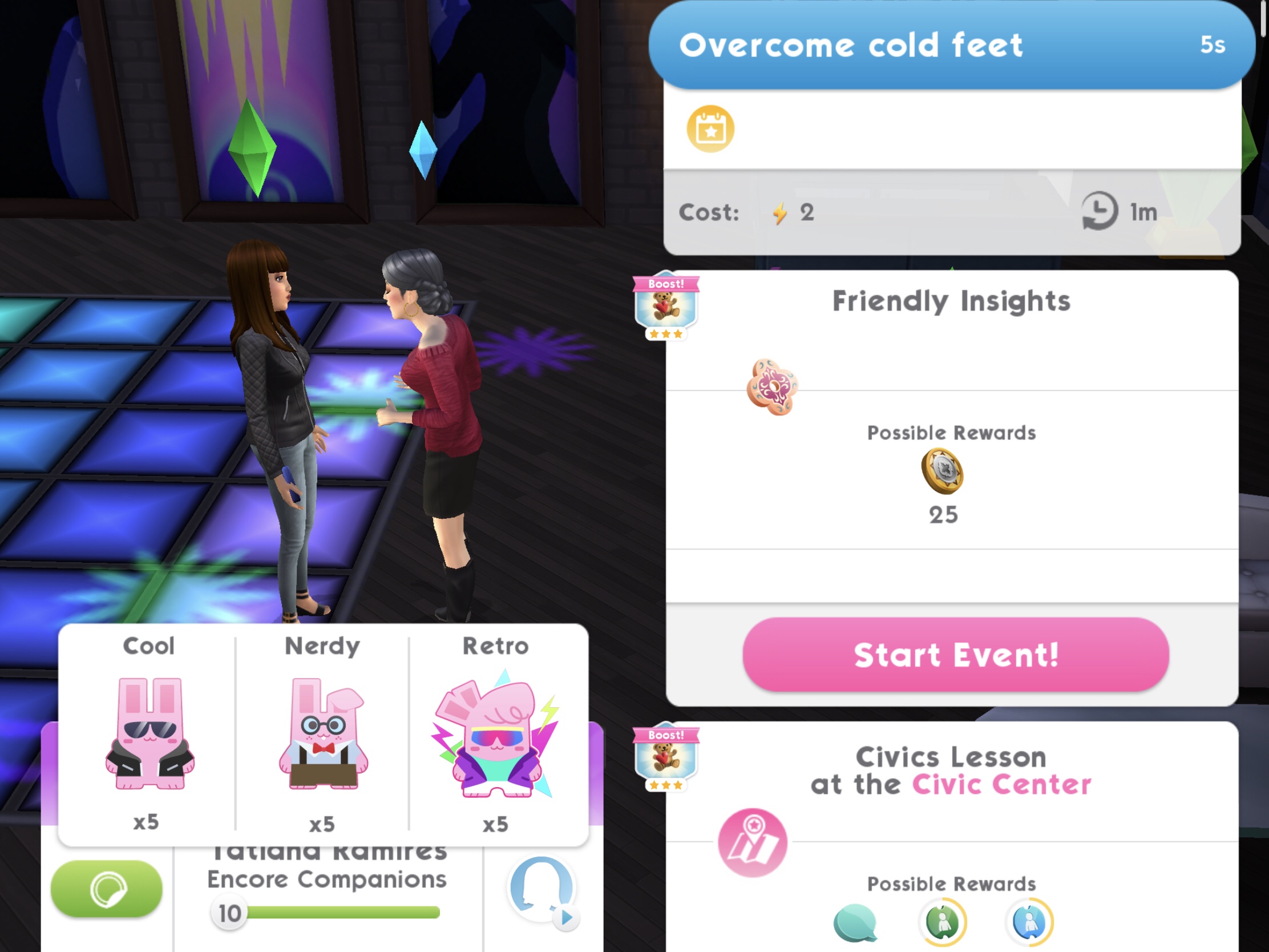 10.Complete ‘A Night To Barely Remember’ event at the Club- takes up to 8 hours to complete (will take up to 4 hours if you use two of your sims to complete this)* (select the event on your sim’s partner) Reward: 25 coins and 10XP