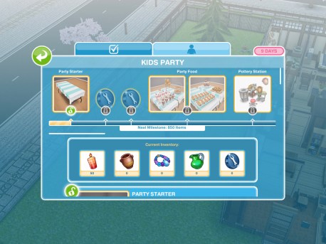 Here you will see you have collected enough items to unlock the Party Starter pack! When you unlock each pack, before the items are available in your home store you need to purchase them with the arts and crafts items you make- this goal is coming up!