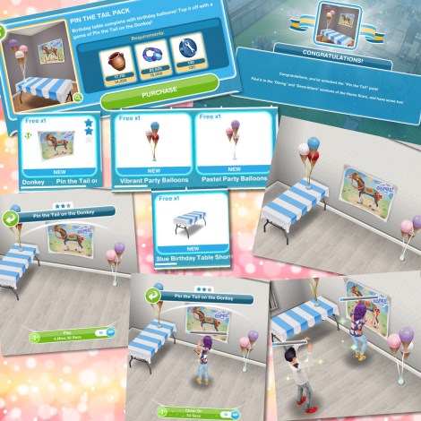 Preteens can play pin the tail on the donkey for 4 minutes 30 seconds while other sims cheer them on!