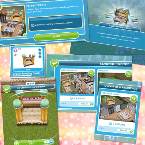 You also unlock the ice cream bouncy castle when you claim this template, it will cost 50SP and can be found in the outdoor decorations section, only one sim can use the bouncy castle at a time