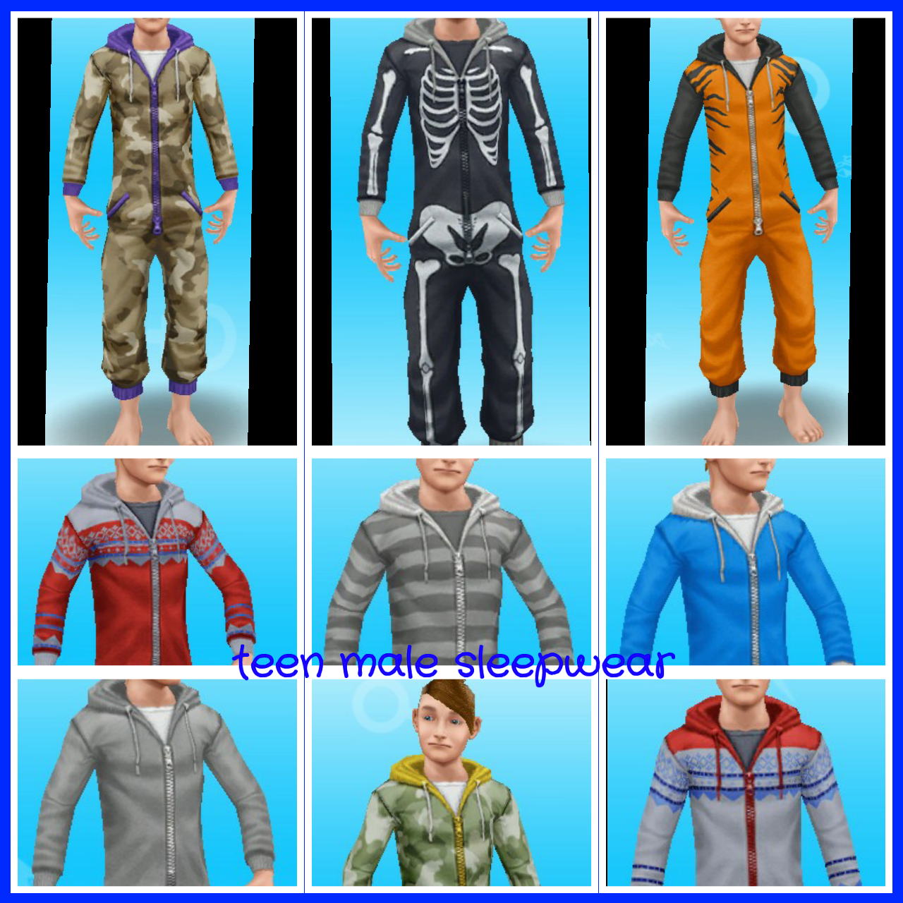 you can mix and match with the teen sleepwear: choose a onesie and socks for a male, choose a top, bottoms and slippers for a female.