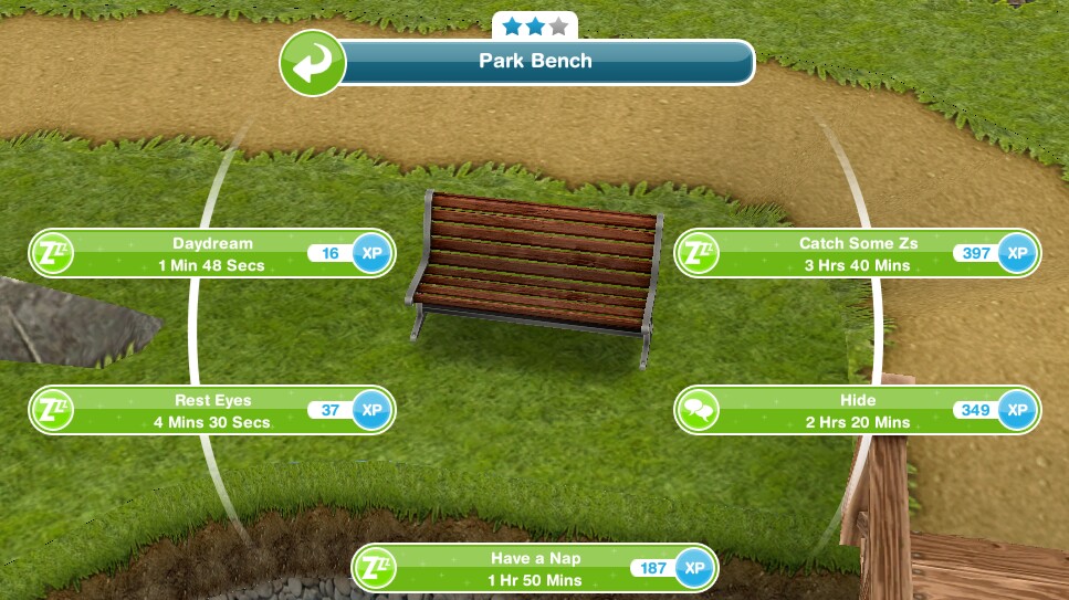 - Collect candy pieces (5 pieces)- 5 hours 30 minutes (click on purple candy monster, you can get more than one candy piece each time you do this and more than one sim can do this at once- I had to close the game and open it again for the other 4 monsters to appear)