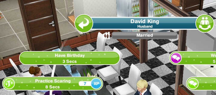 - Practice scaring a sim- 1 second (select interaction between two sims)