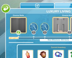 Here you will see you have collected enough items to unlock the Cinema Walls pack! When you unlock each pack, before the items are available in your home store you need to purchase them with the arts and crafts items you make- this goal is coming up!