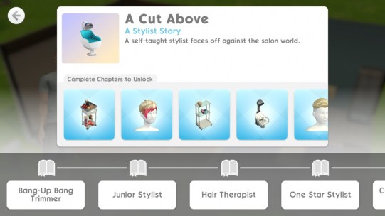 There is a new hairstylist career and story called ‘A Cut Above’ this will unlock once you have completed the ‘Trending Now’ story at the Fashion Studio. You will then be able to buy the Stylist Chair at the Fashion Studio to start this career: