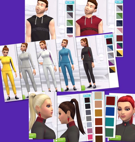 You will find the preppy ponytail in the hair section for female sims, the right on track tracksuit in the outfits section for female sims and the sporty hoodie in the tops section for male sims, all of these are prizes free: