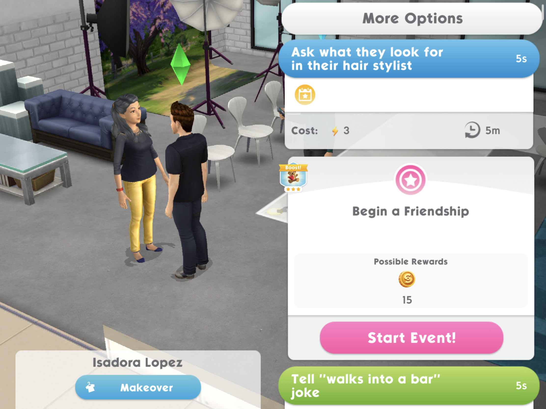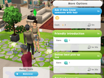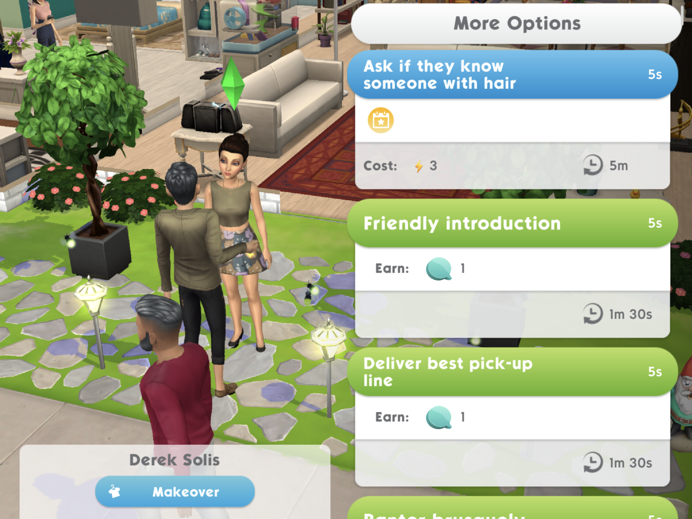 8.Poll 3 sims to find out what they look for in their hair stylist- 5 seconds, costs 3 energy each Reward: 25 simoleons