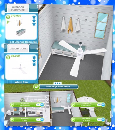 Completing this event also unlocks the in-ground spas in the store (check out my post on how to add and use the spas here) as well as Grey Concrete pool and patio paving, Tall Oak Slats (window), Oak Slats Double (door), Black Cube Partition, Black Fan and Gold Rubix Mirror Double (decorations) Oak Sunside Table (dining room) Black Danging Lamp (lighting) and Oak Floorboards (flooring)