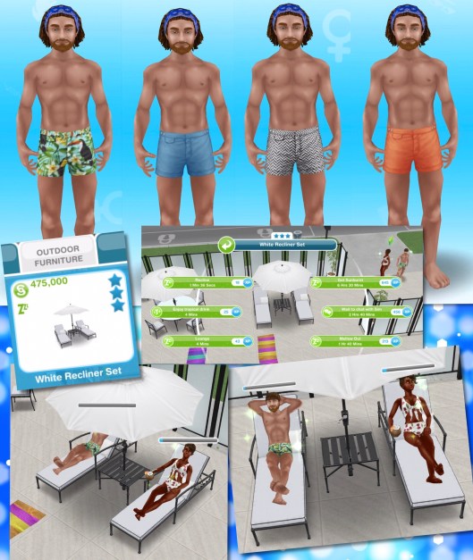 The 4 swim shorts can be found in the swimwear section of the wardrobe for male adult sims for free