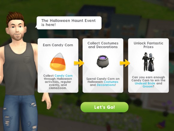 The Halloween Haunt Event is back in The Sims Mobile but be quick as it is only available for 9 days from 3rd October! There is no Countdown to Halloween event this time so unfortunately no way to get a head start which is a shame but the rest is the same as last year. The quest and event is the same as when it was last available, there are no new prizes but you have the chance to earn any of the Halloween prizes you didn’t get last time using candy corn to buy items such as Fairy Makeup, Pumpkin Rugs and Spooky Sofas. There is also the creepy coffin where you can spend more candy corns to unlock gravestones and jack o’ lanterns (again the same as last time) so we are going to need a lot of candy corns!
