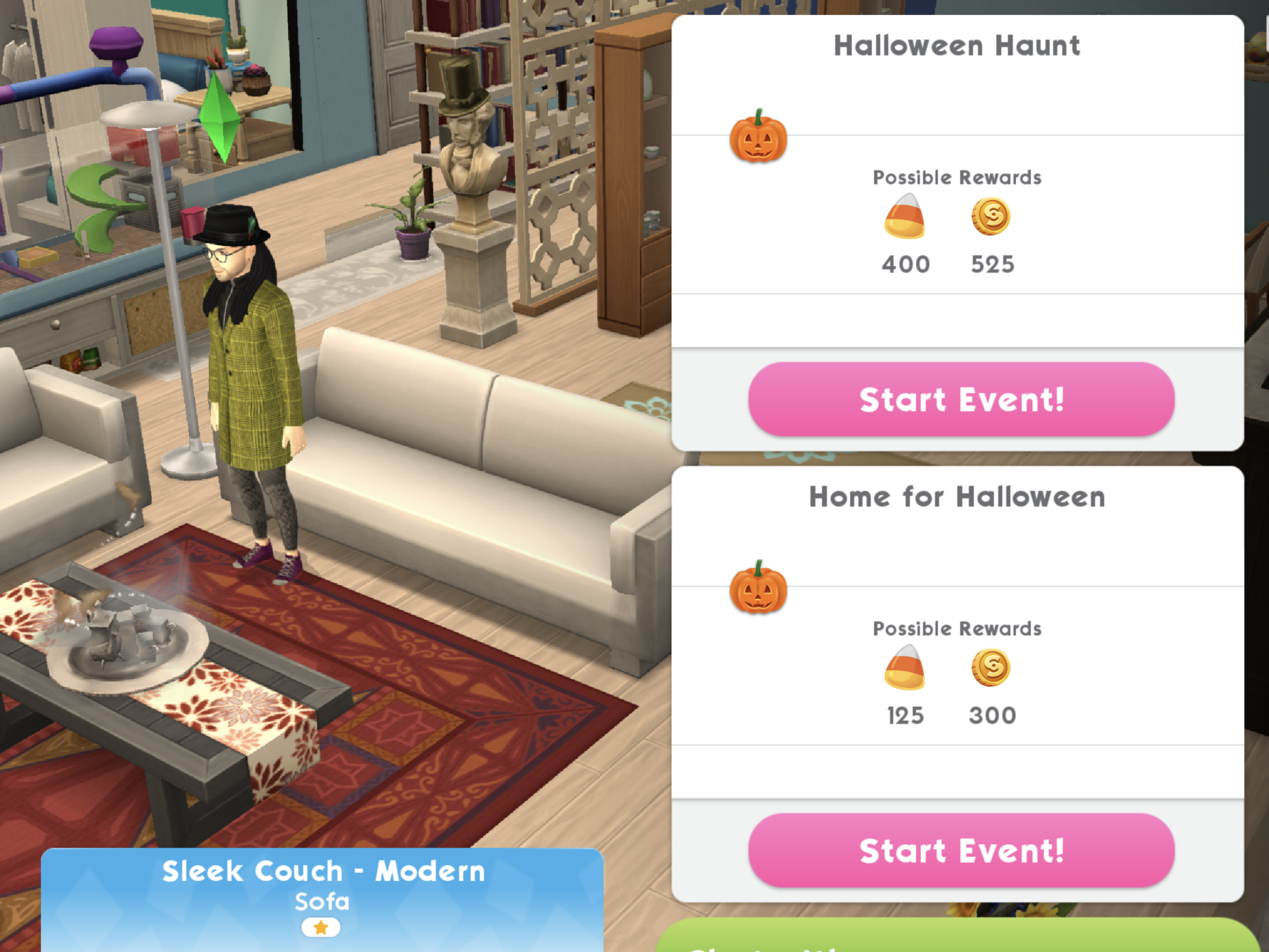 - Complete the Home for Halloween Event (click on the sofa to begin)
