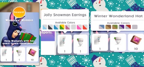 Wumples has come from The Sims Freeplay to see what is going on in The Sims Mobile and she has brought with her a new quest Wumples Wishlist! Completing this limited time quest in the 4 day time limit unlocks the jolly snowman earrings, winter wonderland hat and 10 fashion gems.