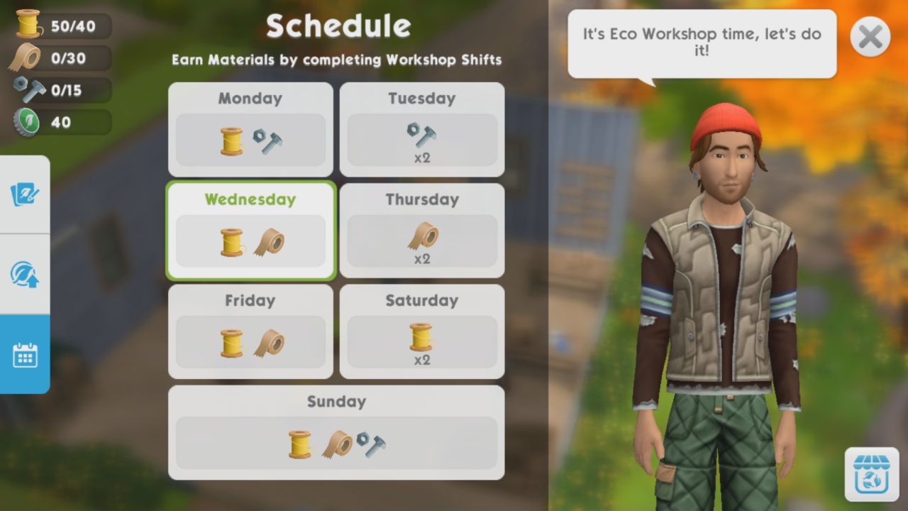 The aim of the Eco Workshop is to upcycle/repair items using materials- you aren’t really repairing anything, you just need to collect enough materials to make that item, and then you will be able to place that item in your house! The materials (thread, tape and nuts and bolts) need to be collected by completing workshop shifts, every Monday you will see new projects to complete so you have 7 day to collect all the materials and make the items before the projects refresh.