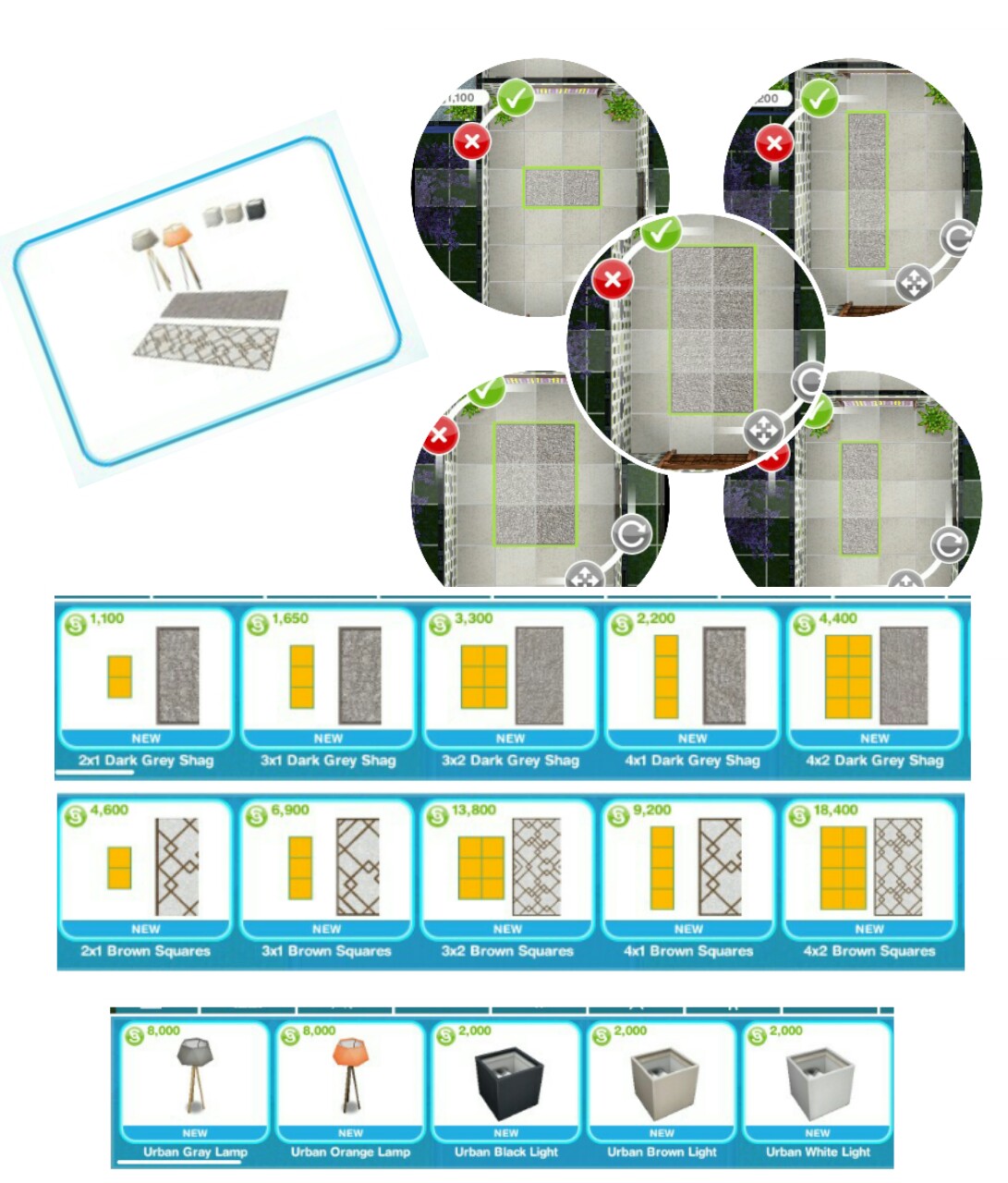 Rugs can be found in the rugs section and the lights can be found in lighting