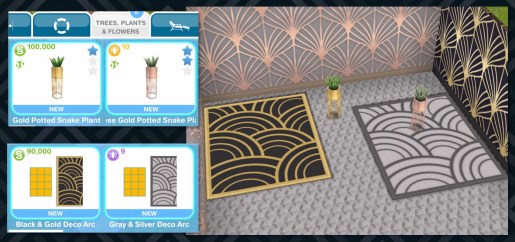 Trees, Plants and Flowers Section: Gold (S100,000) and Rose Gold (10LP) Potted Snake Plants