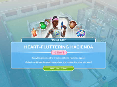 Complete this brand new live event (starts 2nd February 2022) to unlock Hacienda themed items and if you complete the whole event in the time limit you unlock the heart-fluttering Hacienda house template. This event is only here for 10 days and the aim of it is to collect enough arts and crafts items from the arts and crafts stations (found in the event tab of buy mode) to unlock all the items in this event.