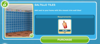 Here you will see you have collected enough items to unlock the Saltillo Tiles pack. When you unlock each pack, before the items are available in your home store you need to purchase them with the arts and crafts items you make- this goal is coming up!