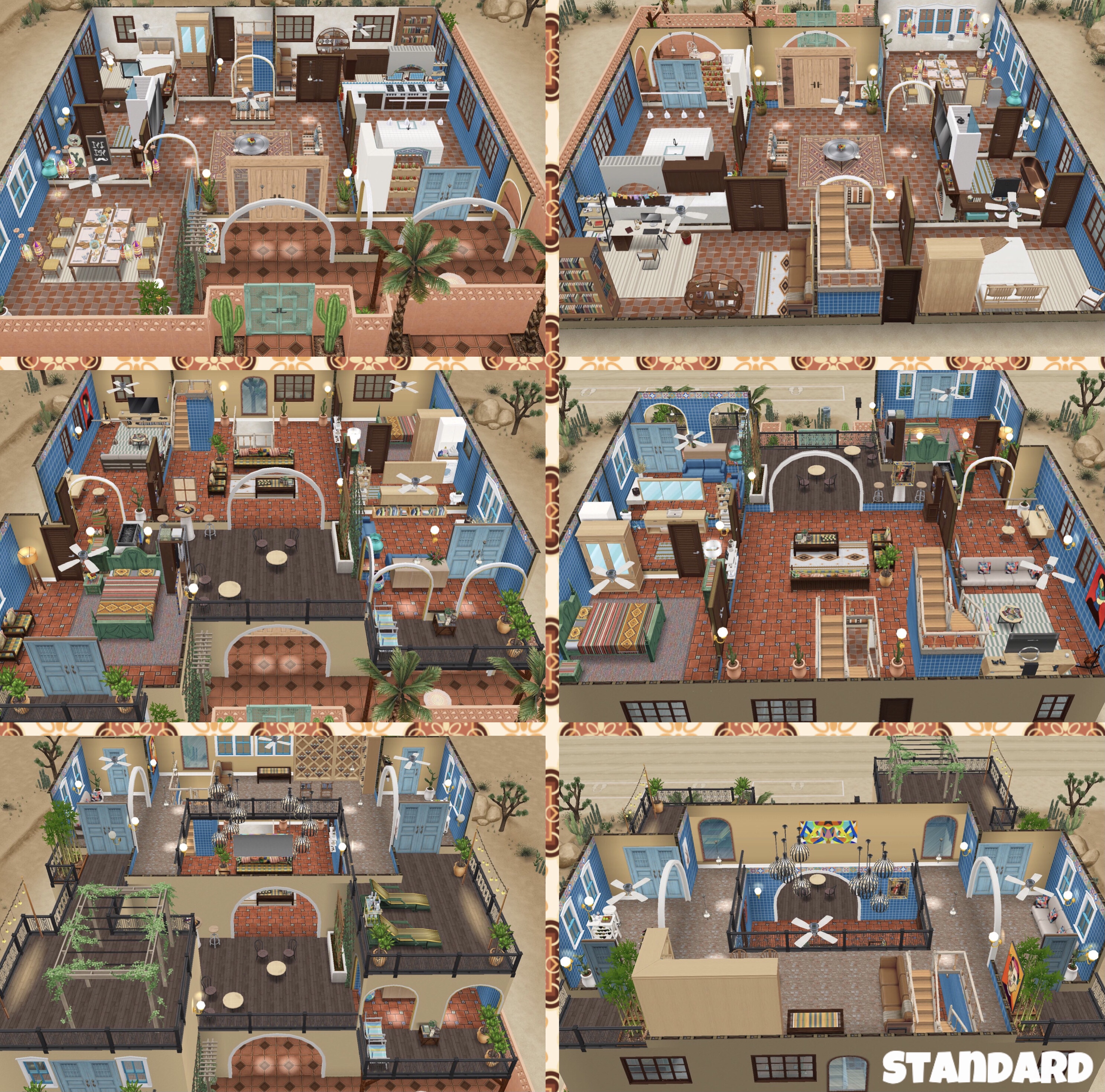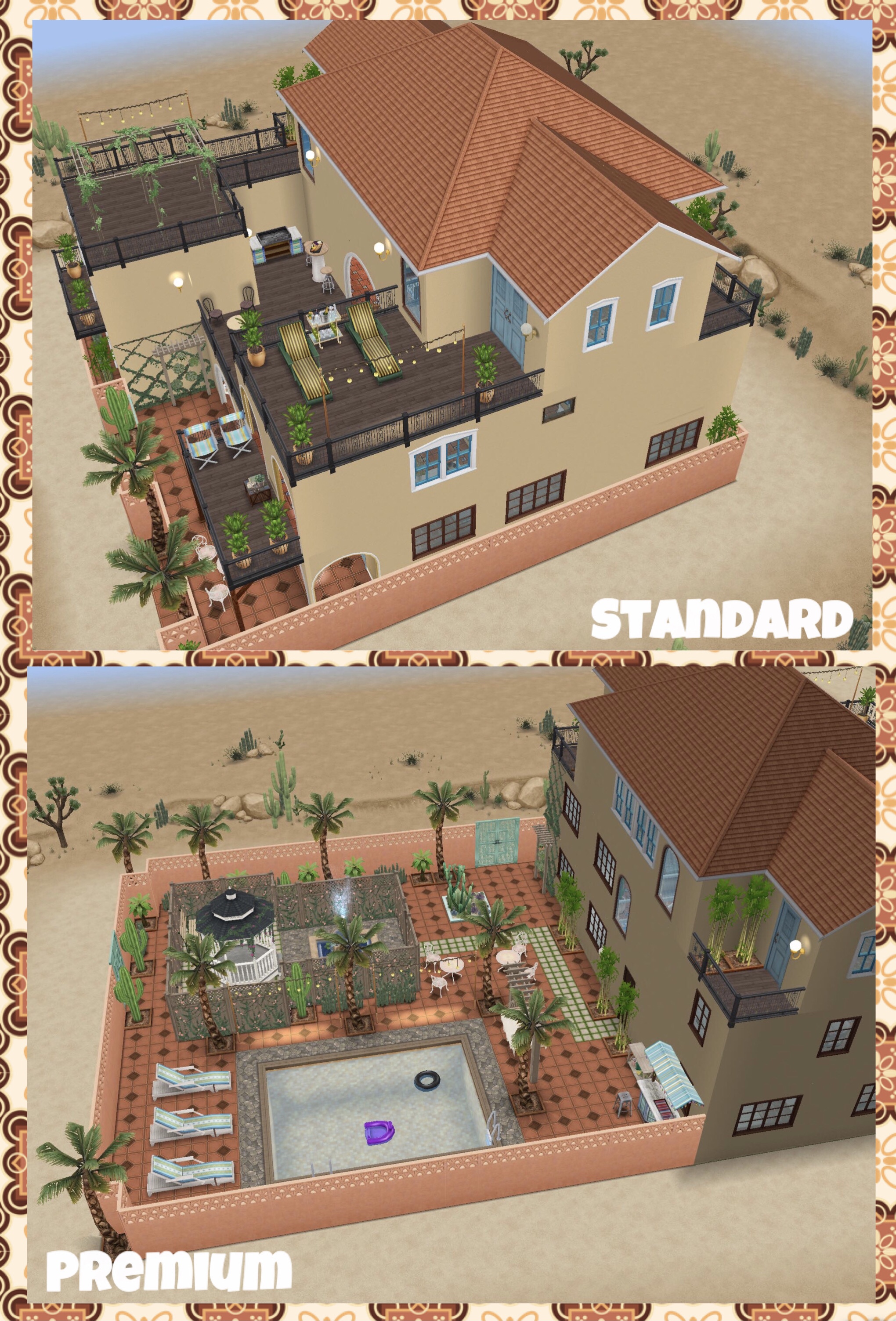 The house is the same on both the standard and the premium residence, the premium residence has a garden with a pool.