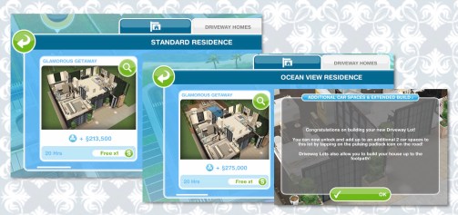 This template can be found under the driveway homes tab and built on a standard or premium residence, the first one is free then they cost simoleons depending on how many houses you have already built. You can add up to 4 cars to this house lot!