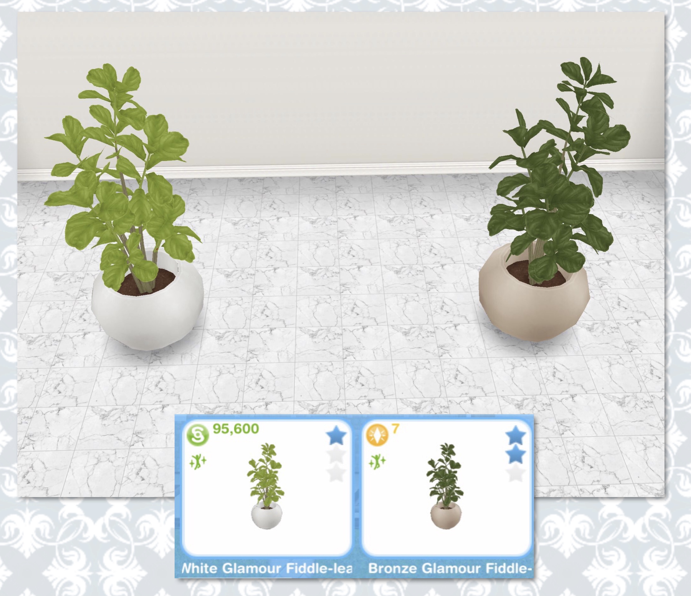 Trees, Plants and Flowers Section: White (S95,600) and Bronze (7LP) Glamour Fiddle-Leaf
