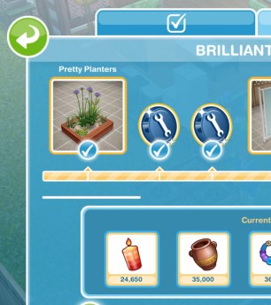 Here you will see you have collected enough items to unlock the Pretty Planters pack! When you unlock each pack, before the items are available in your home store you need to purchase them with the arts and crafts items you make- this goal is coming up!